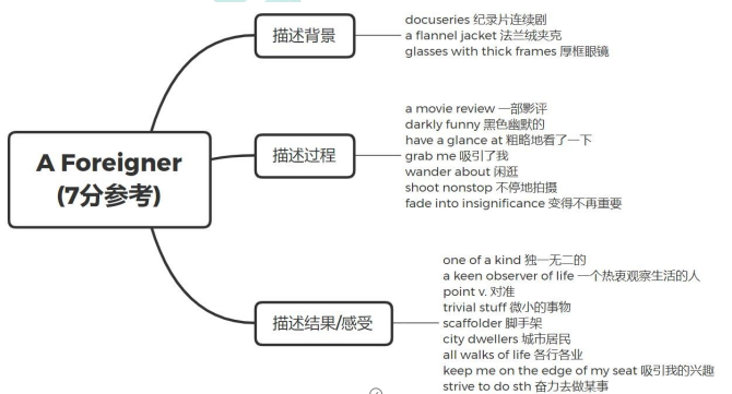 本题是一道人物类话题:描述一个你认识或者听说过的有意思的外国人。描述对象为“一个外国人”,所具备的特质是 interesting,也就是与众不同。所以在描述时要重点刻画这个人物与其他人的不同之处。在语言方面,描述时所使用的主体时态为一般现在时,但是在交代如何知道或者认识这个人物的时候需要使用一般过去时。此外,要注意有意识地增加形容词的使用,也要注意用其他的表达去替换 interesting 这个比较常用的表达。