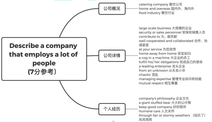 这道题对于许多没有职场相关经验的同学,可能会有一定的难度,语言方面可能涉及到一个公司的架构员工的岗位和责任等,主要限定条件为【雇佣了很多人】, 可以从以下角度来进行扩展:例如很多员工的工作职责、公司福利、经营状况以及管理的方法和架构等。一定要注意雇佣很多员工能够带来的结果、风险以及应对策略的,都可以作为扩展的方向;但以上重点之间需要关注不同方面的衔接运用好因果转折,递进的逻辑关系,体现看待问题的不同角度和立场.