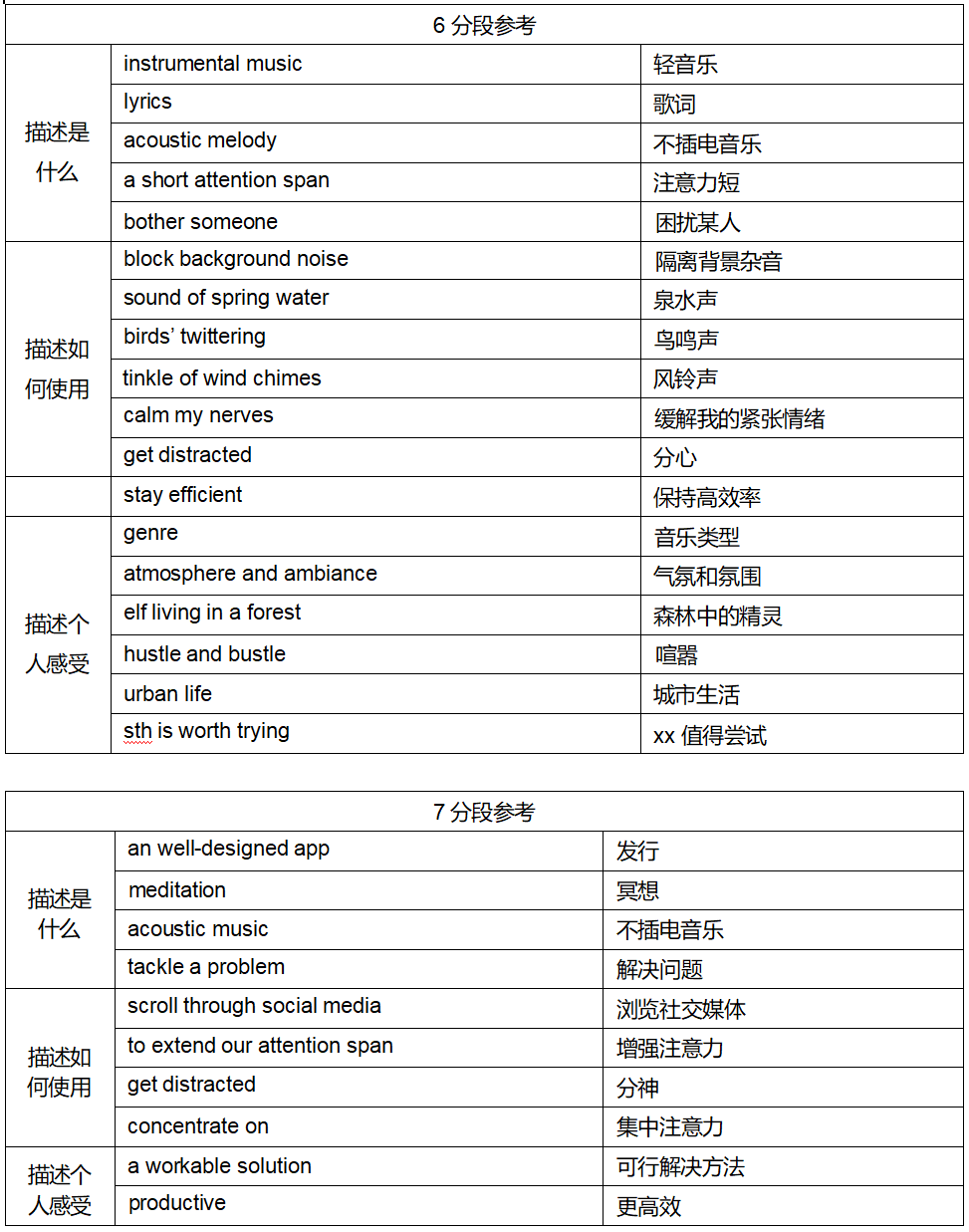 本题可以选择的题材还是比较多的,一般有助于我们集中注意力的可以是一些习惯的养成,比如手机 app ,去图书馆学习,冥想,瑜伽,甚至在工作时放一些舒缓的音乐,都有助于将我们和身边的一些 distraction (分散注意力)的事物隔开。在描述你如何使用这些方法的时候,可以通过时间的顺序少做描 述,比如开始的时候,还是有些困难,但是后来越来越能集中注意力。然后再谈一下,集中注意力后的感 受和好处,比如工作效率的提升,更有成就感,会将其推荐给朋友等等。