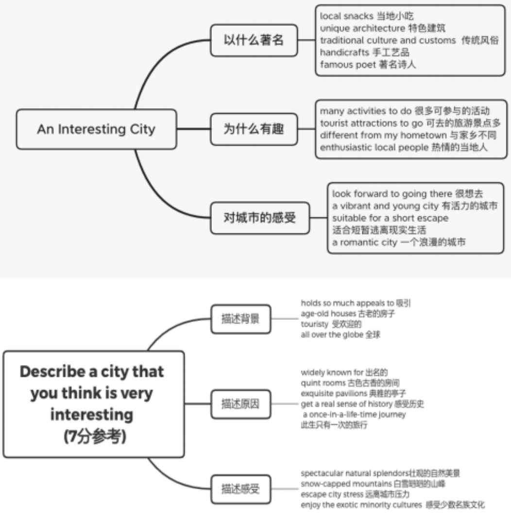Part 2 的很多题目都喜欢用 interesting 这个限定词,但考生在解释的时候, interesting 这个词是较为主观 的,为什么有趣可以有多种解释方法,比如一个地方建筑风格很特别,保留着古韵;或者一个地方以美食 著称,有很多可以吃的特色菜;或者这个地方有趣是因为很多可以做的活动等等。总的来说,这是一个典 型描述城市的题目,从城市方位,特色等,结合你是否去过等一些经历进行延伸即可。