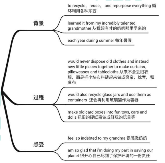 本题可以讲一些生活技能,如骑车、做菜、做家务等。过程描述时要使用衔接词。可添加难易程度的信息,提一提这个技能是否游泳,为什么等。参考答案包括学做饺子和废物再利用。
