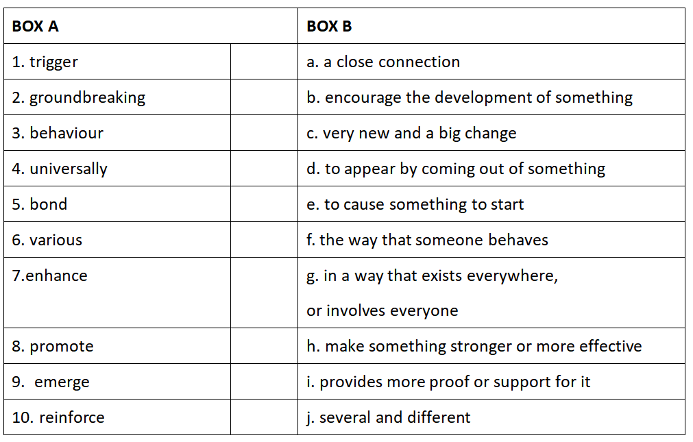 1. Match the words and expressions 1-10 in box A with a suitable definition a-j in box B.