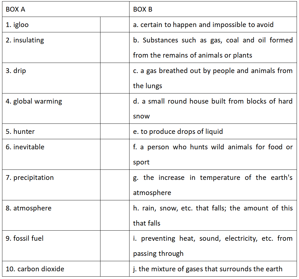 1. Match the words and expressions 1-10 in box A with a suitable definition a-j in box B.
