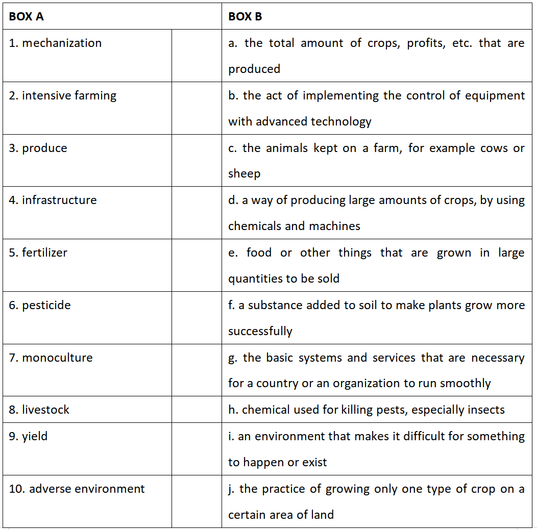1. Match the words and expressions 1-10 in box A with a suitable definition a-j in box B.