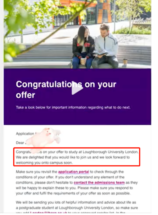 该网友再根据自己的情况修改好申诉信后,得到拉夫堡大学关于考虑的回应。在多次与学校沟通后,他最终成功拿到了拉夫堡大学的offer。