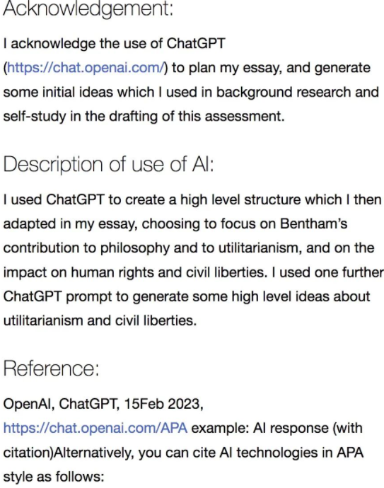 伦敦大学学院(UCL)甚至更新了其网站,说明学生如何使用ChatGPT来节省通常费力的书目、致谢和参考资料的时间。