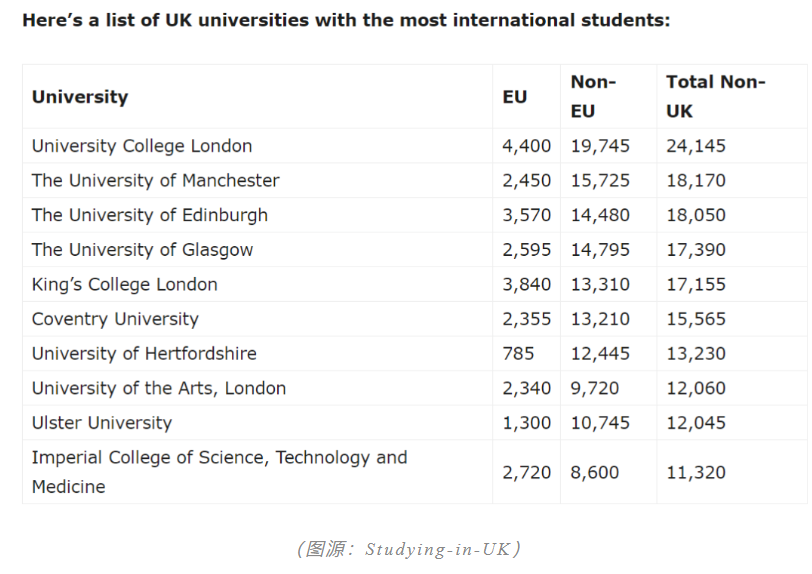 UCL果然不负众望,成为录取国际生最多的英国院校。此外,排在前五名的分别是曼彻斯特大学、爱丁堡大学、格拉斯哥大学、伦敦国王学院。