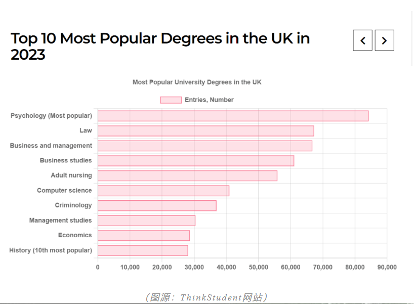 不久前,英国ThinkStudent网站发布英国大学最受欢迎的十大专业。除了公布热门专业以外,该网站还列举了各热门专业的入读人数。