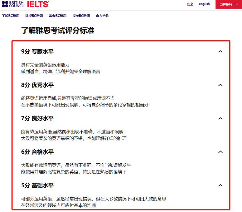 雅思官方评分标准