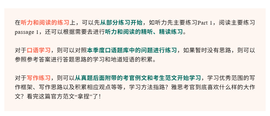 另外,小编建议同学们在开始备考前,先利用真题对自己目前的雅思水平进行测试,这样可以更好的了解自己目前的能力和目标之间的差距,也能更有针对性和规划性的利用好备考时间。